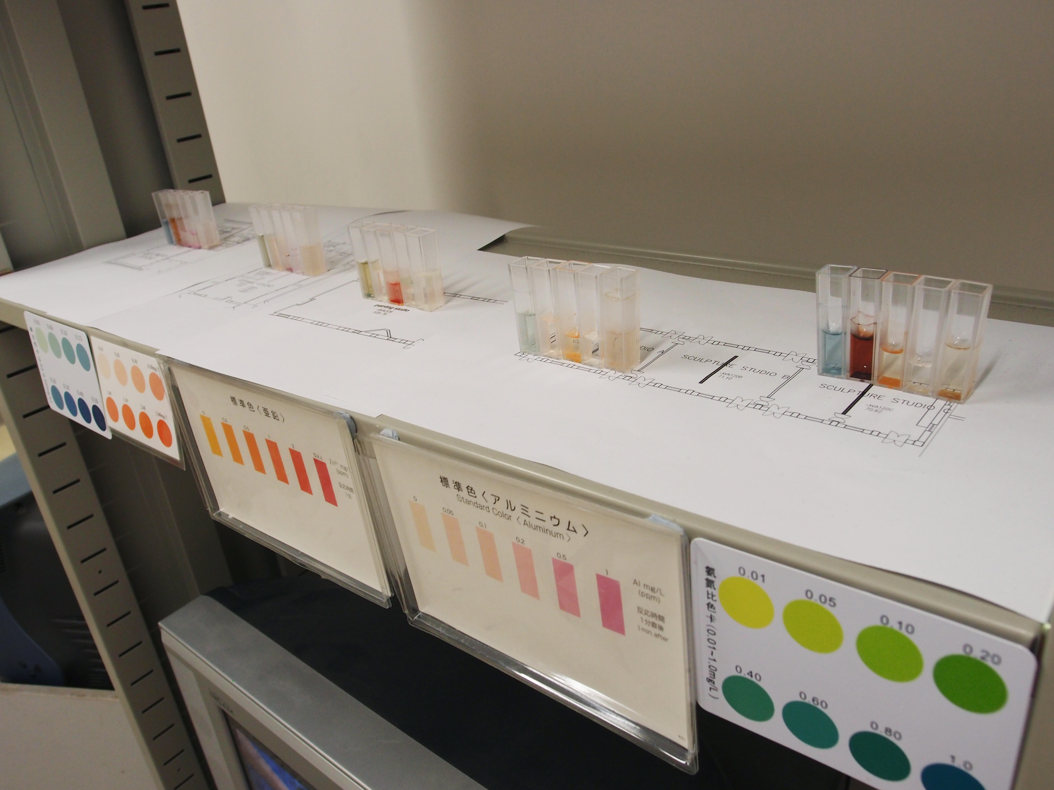 Through water sentiment tank, the print of sculpture can be reviewed by colorimetric which indicated how much toxic chemical and heavy metal left in the water because of sculpture making.