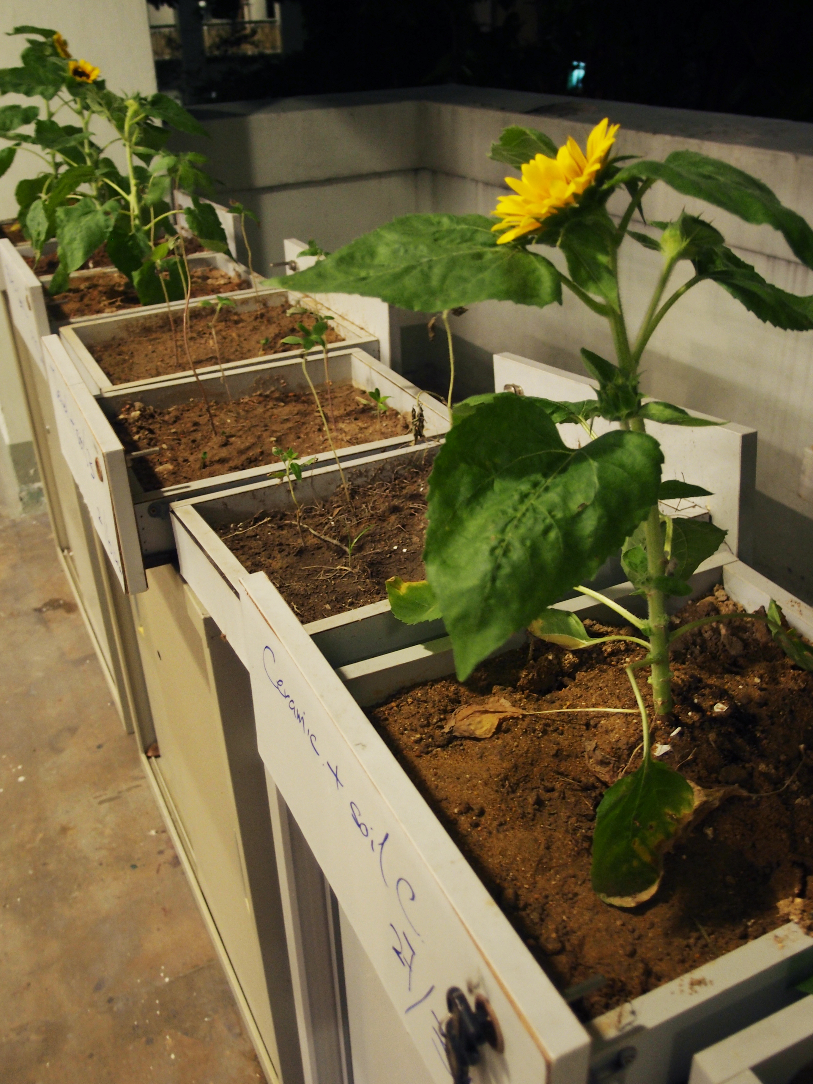 Different sample of soil and sun flowers were cultivated outside with different polluted water of different studios.